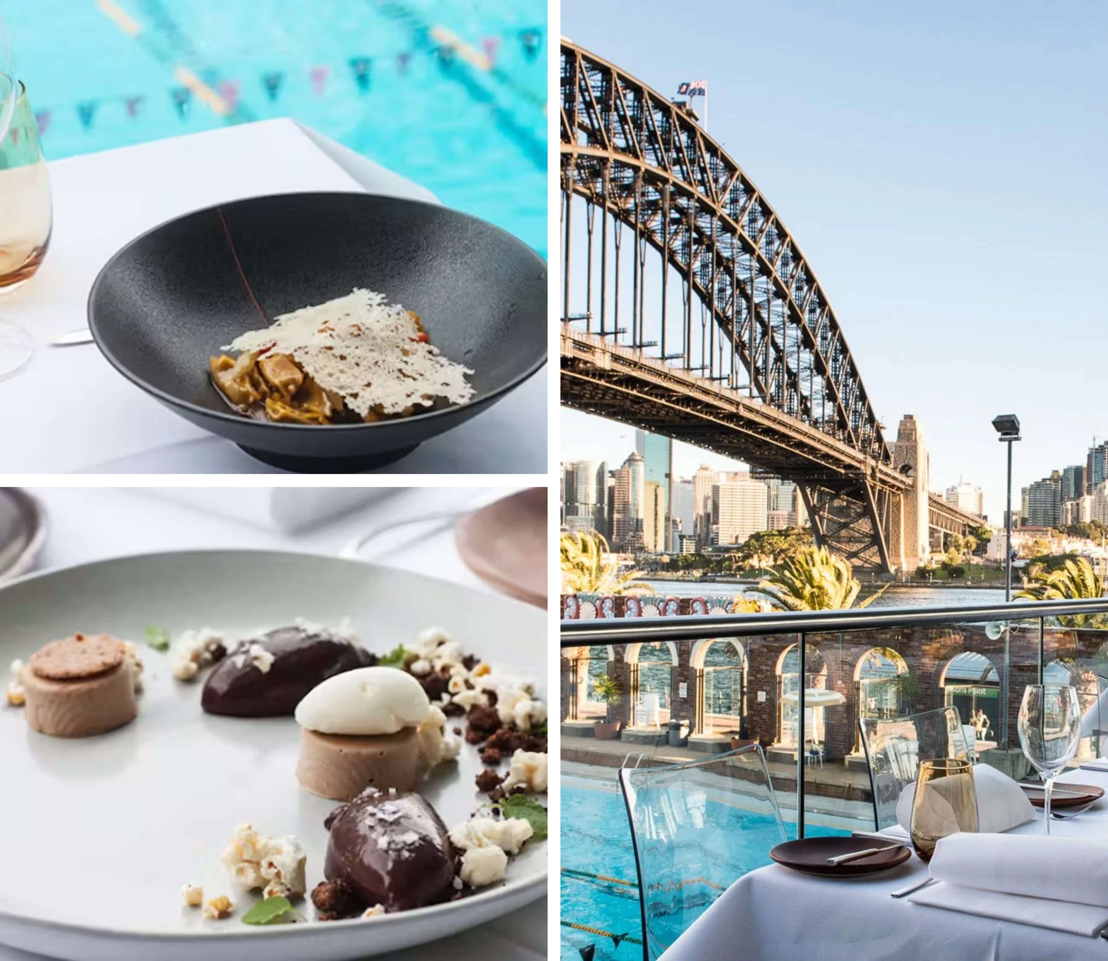 Aqua Dining, nestled above the North Sydney Olympic Pool in Milsons Point, offers contemporary Italian cuisine with panoramic views of the Sydney Harbour Bridge and Opera House. Chef Davide Rebeccato's menu features dishes like Kurobuta pork belly and Moreton Bay bug tagliolini, complemented by an extensive wine list. The restaurant's modern design and waterfront location make it a premier destination for both locals and visitors seeking an exceptional dining experience.
